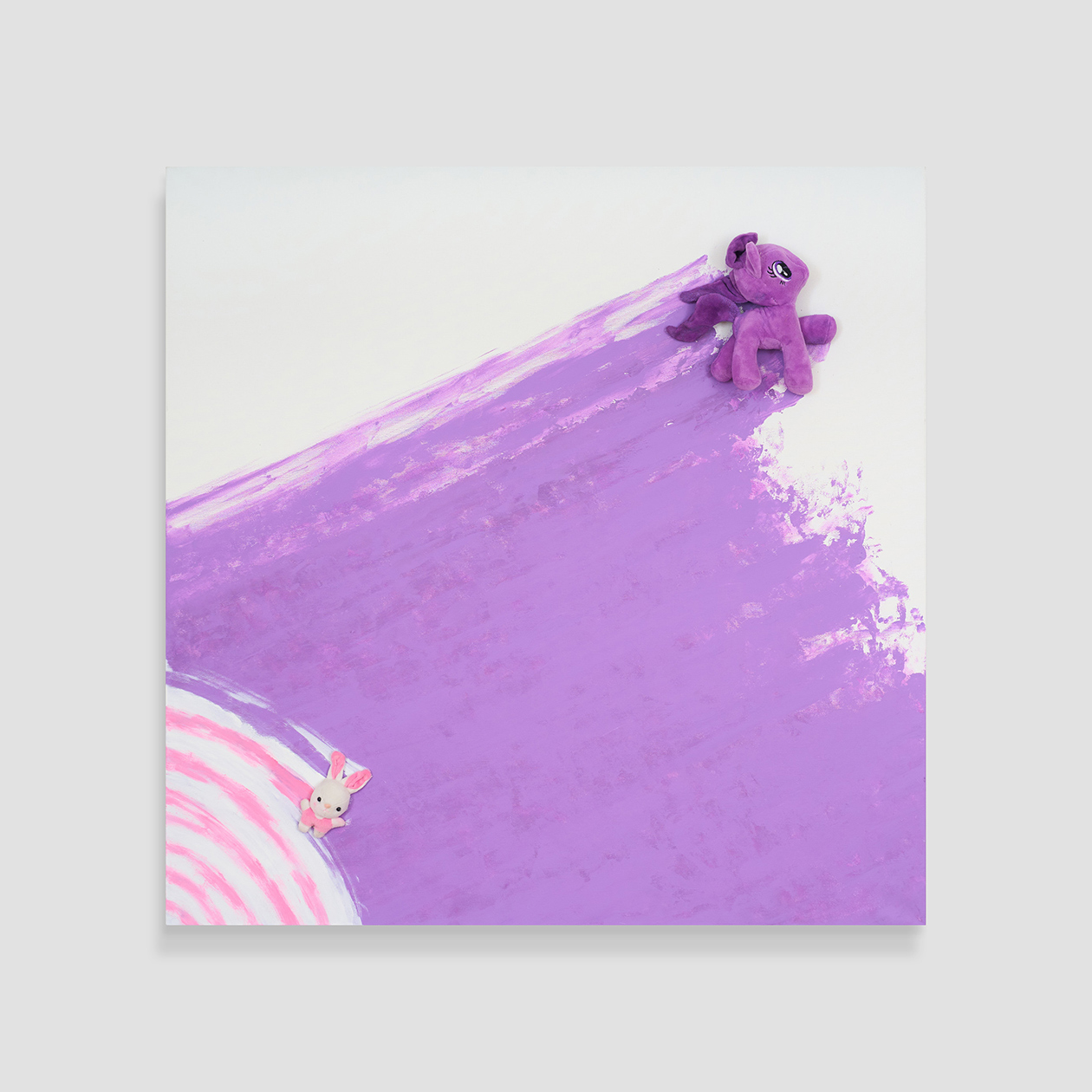 В основе экспозиционного сюжета — плюшевые зверьки, «меховое воинство» автора во главе с зайцем, протагонистом выставки и его альтер эго.
