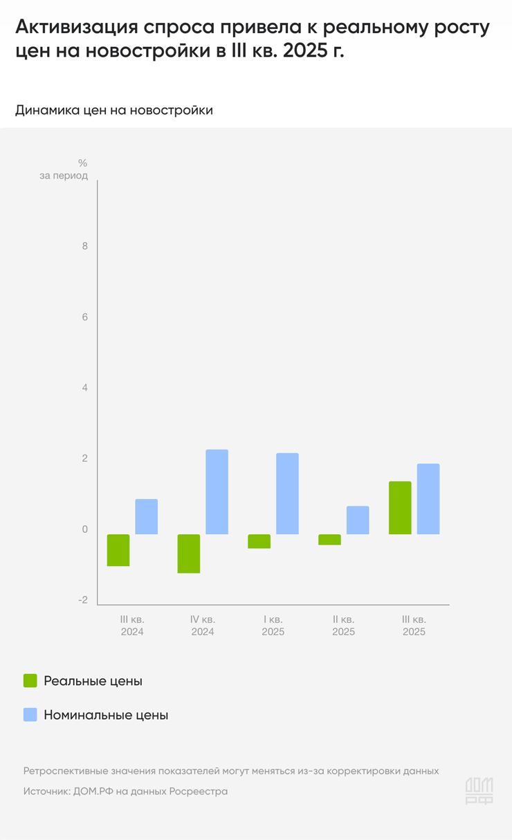 +3 п. п. ко второму кварталу. - Увеличился спрос. В июле — сентябре число зарегистрированных договоров долевого участия на жилье увеличилось на 29% год к году и составило 148 тысяч. Это лучший результат с середины 2024 года, когда перестала действовать массовая господдержка.