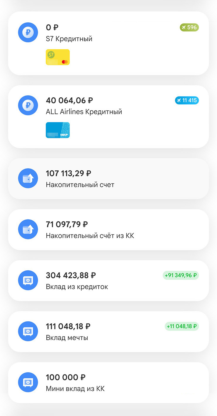 Заработанные деньги множатся, лимиты повышаются, покупки совершаются. Все проценты с кредитных денег я оставляю на счетах, пока не накопится большая сумма. Например, однажды снял полученные процентами 90 000 ₽ и закрыл долг по основной кредитке за отпуск.