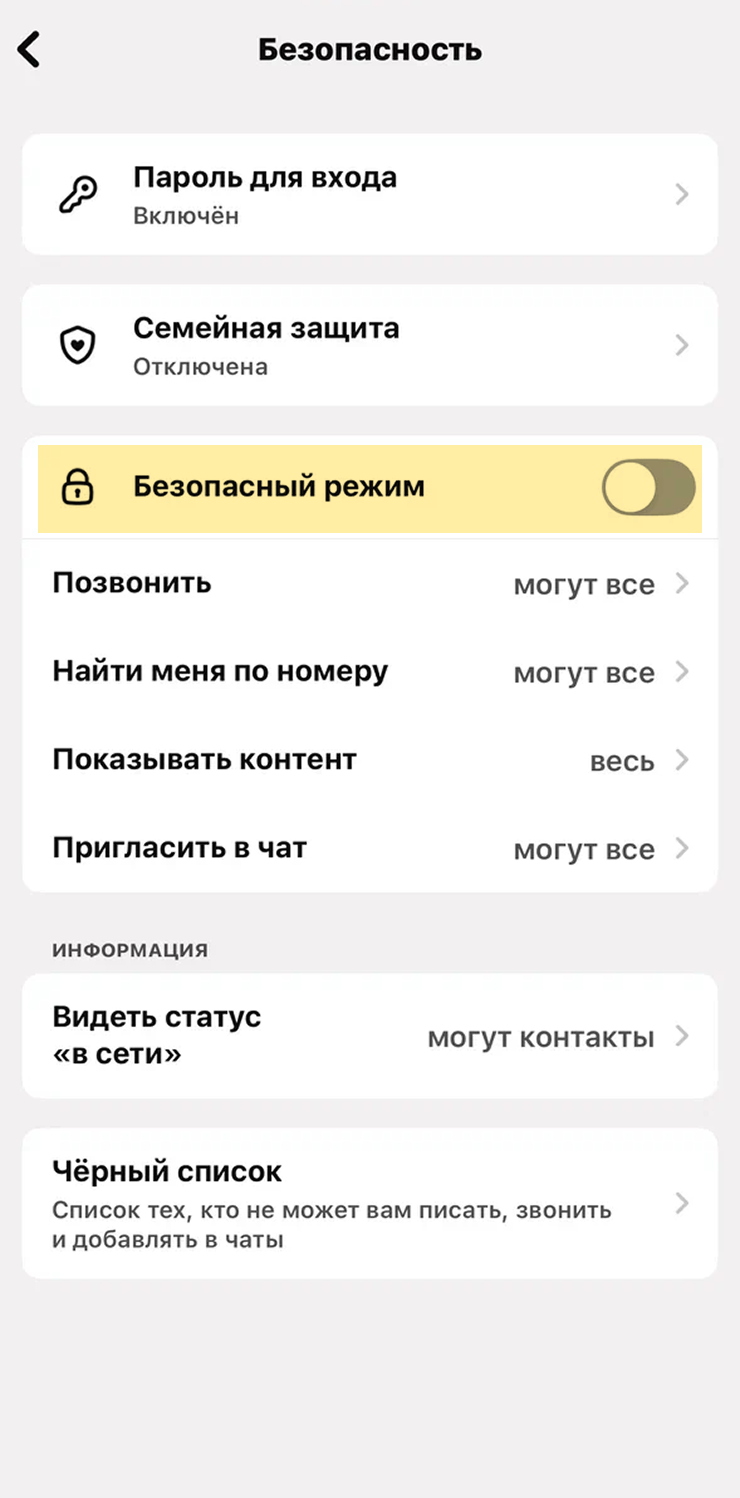 Безопасный режим. Он делает профиль менее доступным для посторонних: написать, позвонить или пригласить в чат смогут только контакты. Отдельно стоит ограничить поиск по номеру телефона, чтобы вас могли находить только люди, у которых ваш номер уже есть в телефонной книге. Это не спасет от всех сценариев угона, но уменьшит риски.