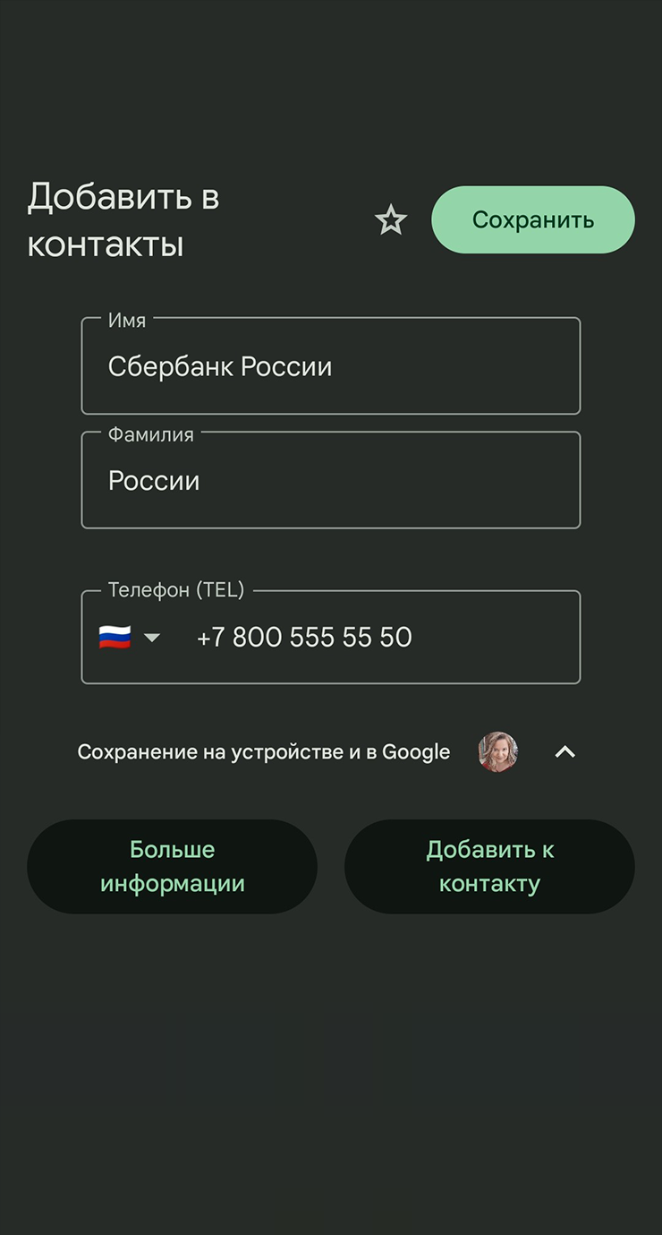 Когда человек открывает файл, смартфон предлагает сохранить контакт или обновить тот, что уже записан в памяти. Если человек сделает это, в телефонной книге появится номер мошенника под именем «Служба технической поддержки банка», «Мама», «Служба доставки», «Роскомнадзор».