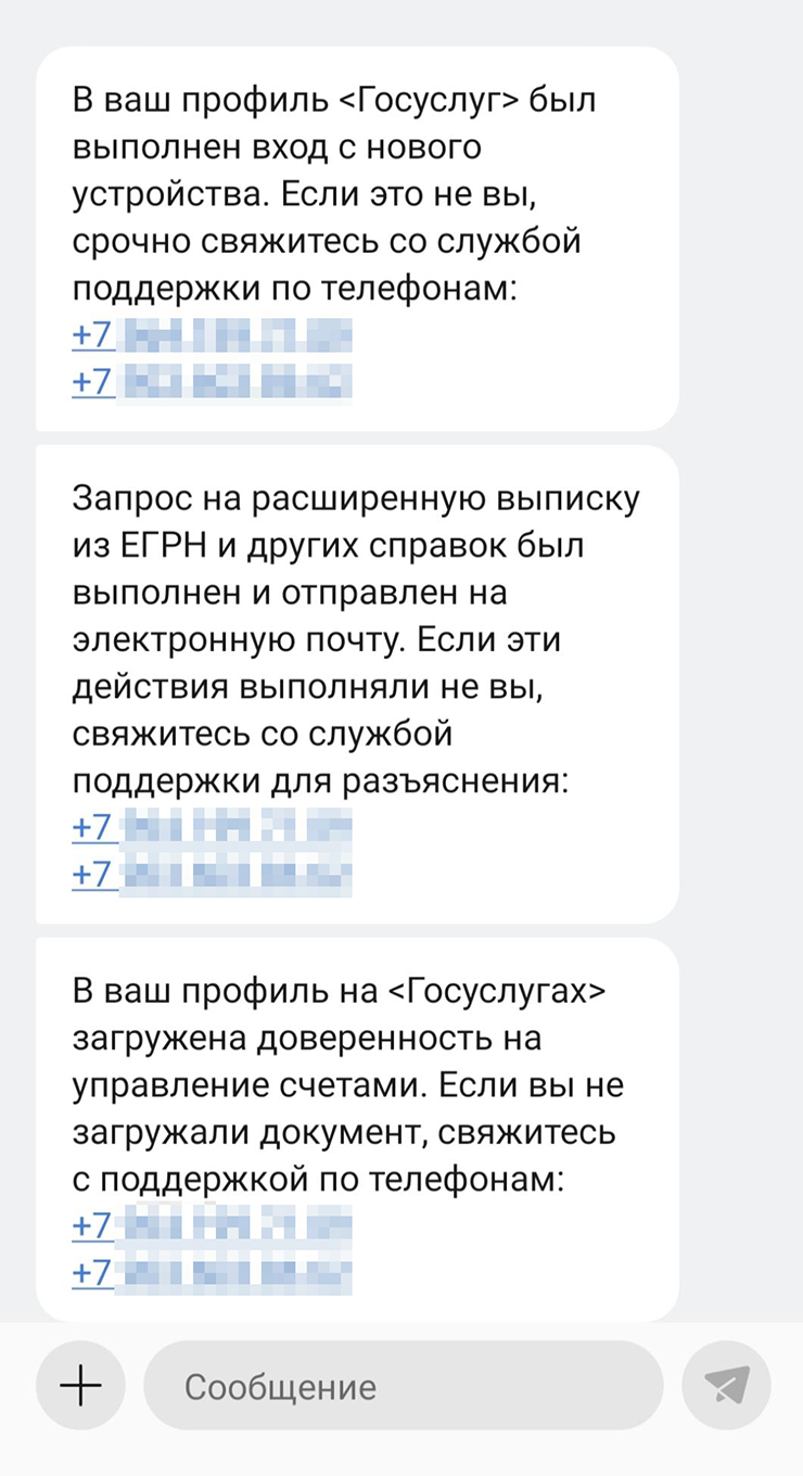 Мошенники отправят код для входа в госуслуги. Если сообщить его, они получат доступ к личному кабинету и, к примеру, загрузят туда поддельную доверенность. А потом от имени ФСБ или Росфинмониторинга будут запугивать тем, что аферисты сейчас украдут деньги, наберут кредитов и перепишут на себя имущество. Чтобы этого избежать, предложат перевести деньги на «защищенный счет».