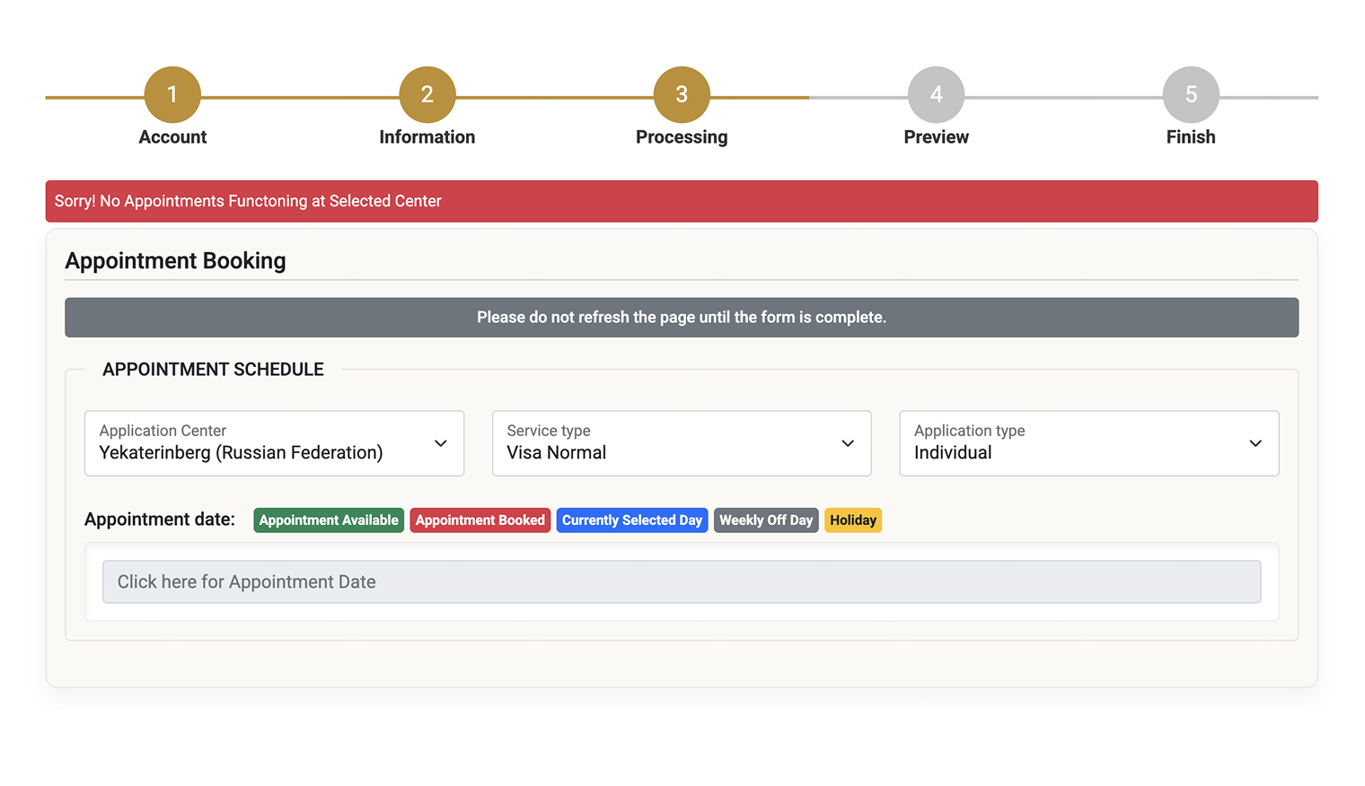 Для подачи документов обязательна предварительная запись на сайте BLS. На момент публикации слоты есть во всех городах, кроме Екатеринбурга.