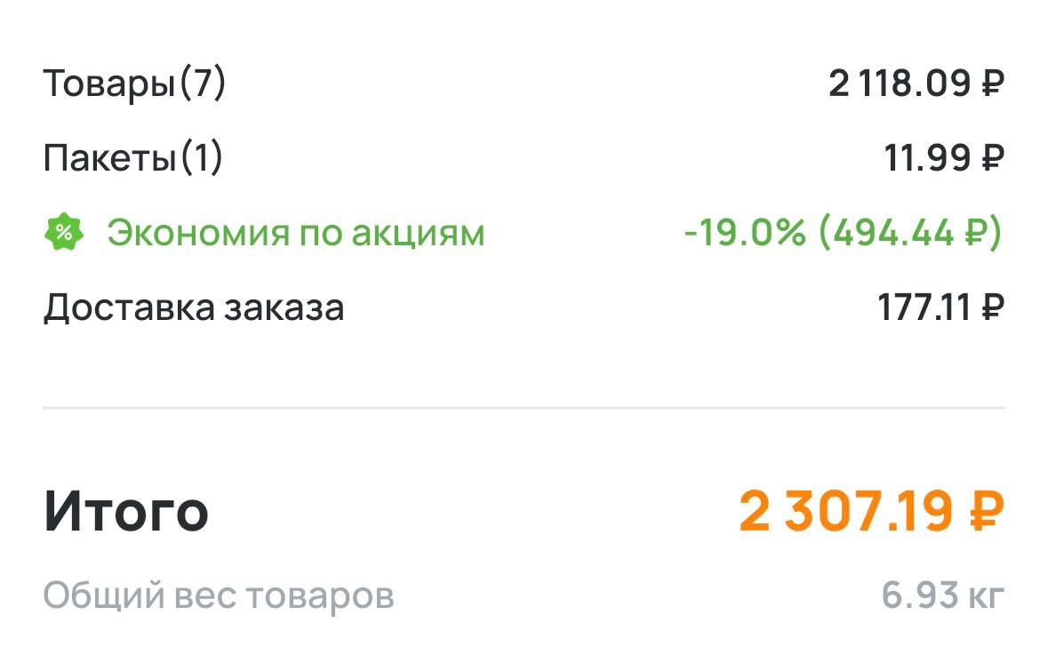 Я поняла, что выгоднее всего комбинировать спецпредложения банков по кэшбекам в конкретных магазинах с промокодами на первый заказ: скидка на продукты может суммарно доходить до 50-60%. Недавно мне удалось заказать так целый пакет продуктов за 1300 ₽. В нем были 2 целые курицы, упаковка креветок 850 гр, 2 упаковки говяжьего фарша, 2 упаковки рыбного филе в упаковке, 2 упаковки творога по 300 гр и хлеб. Скидку около 500 ₽ дал промокод и акции магазина на любимые товары, еще 1000 ₽ вернулась кэшбеком от банка.