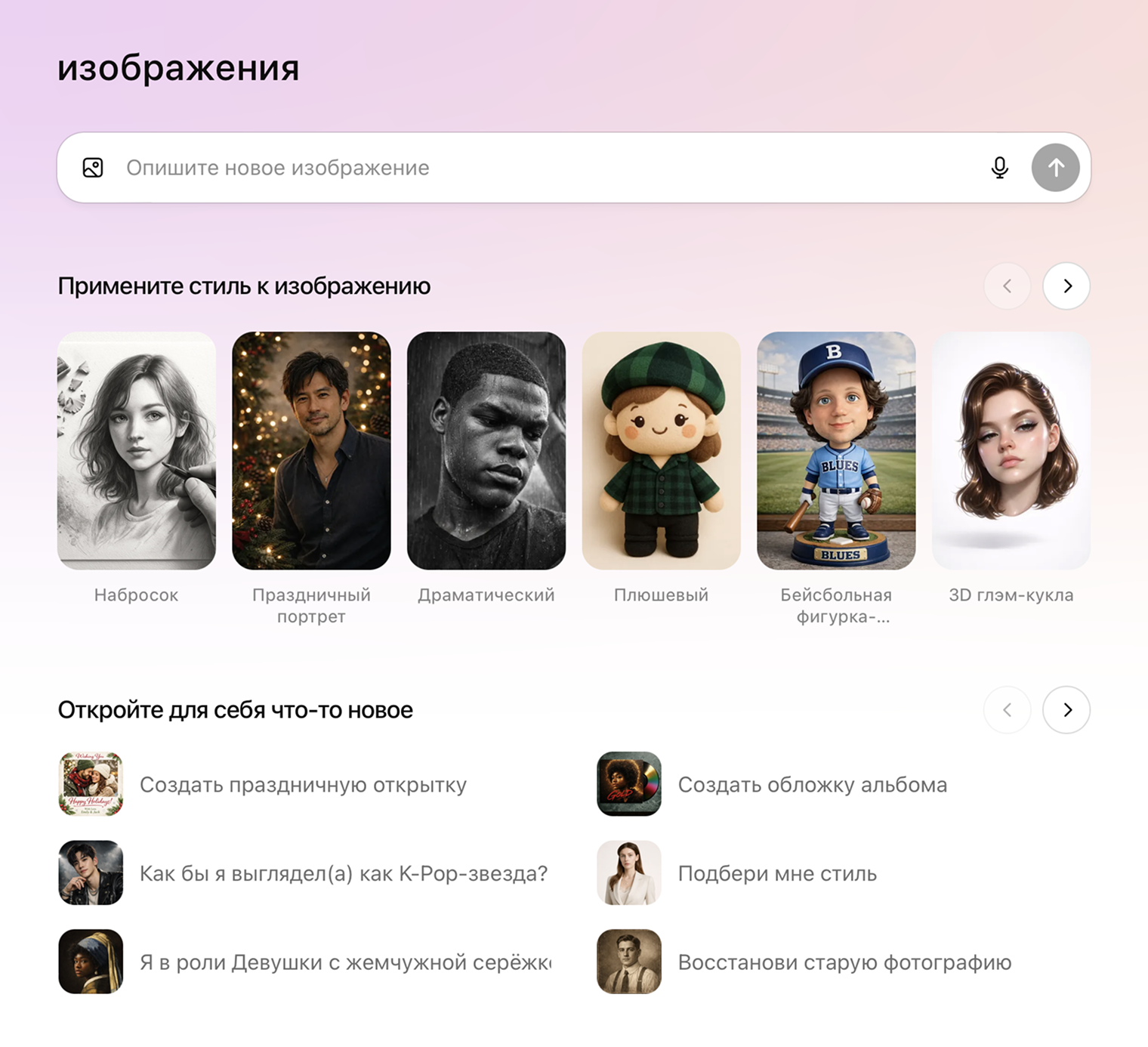 Вместе с этим OpenAI запустила раздел ChatGPT Images, где доступны все картинки пользователя, а также готовые шаблоны и фильтры. На русском языке он назывется «Изображения». Расскажу подробнее.