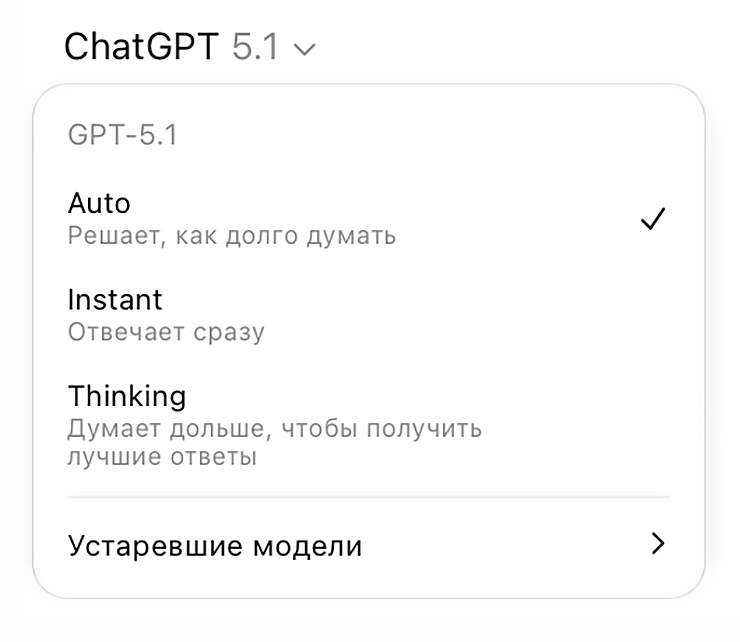 Предыдущие версии Instant и Thinking еще три месяца будут доступны в ChatGPT в разделе устаревших моделей, но только для платных пользователей.