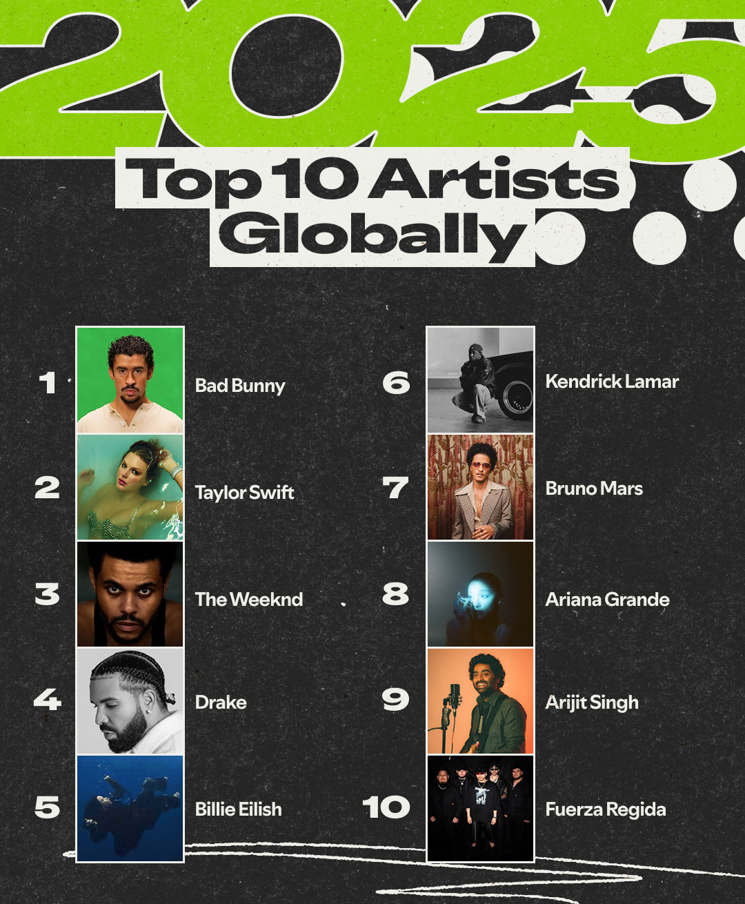 Spotify подвел итоги 2025 года: самым популярным музыкантом в четвертый раз стал Бэд Банни