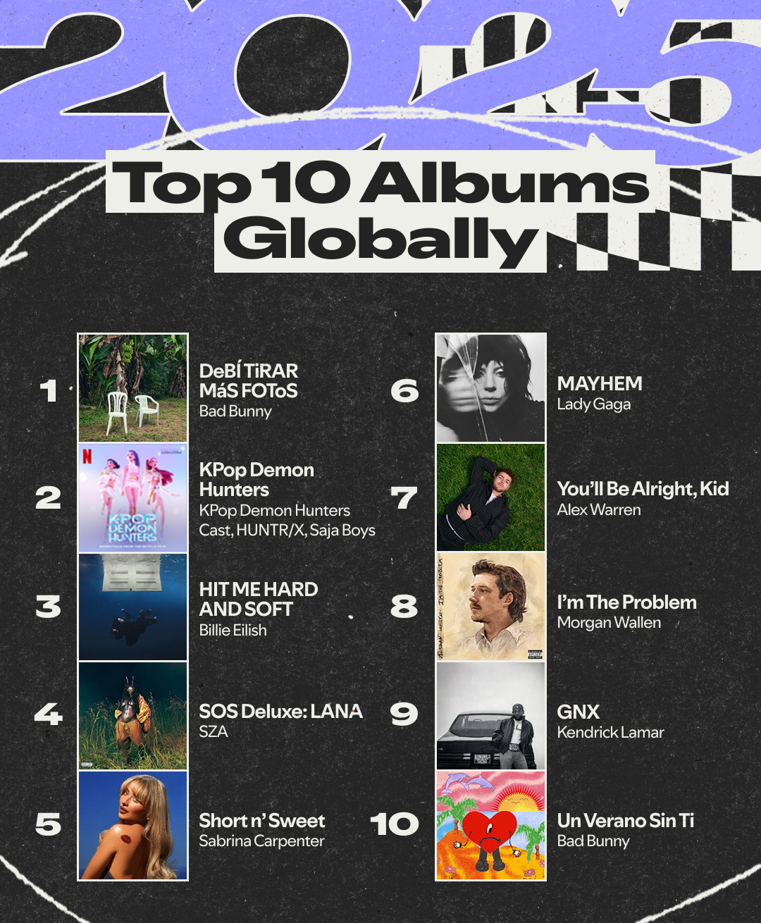 Альбом года — Debí tirar más fotos Бэд Банни. За ним идут саундтрек мультфильма «Кейпоп-охотницы на демонов» и Hit Me Hard and Soft за авторством Билли Айлиш.